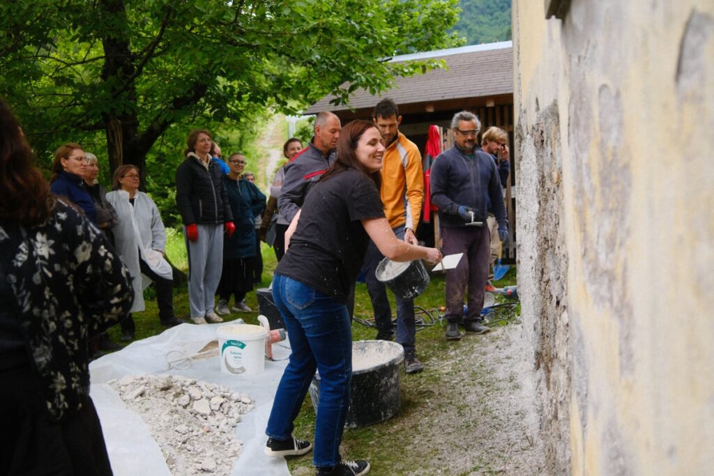 The main part of the program was represented by workshops in three different areas. The participants already chose the module they wanted to attend before the start. At the workshop on traditional construction with lime plaster, under the guidance of experienced academic restorer, researcher, and lime plaster master Klavdi Zalar, part of the wall surface at the Giser house was restored and various techniques of applying lime plaster was learned in practice.