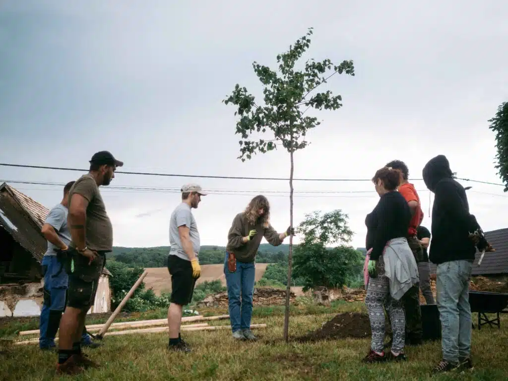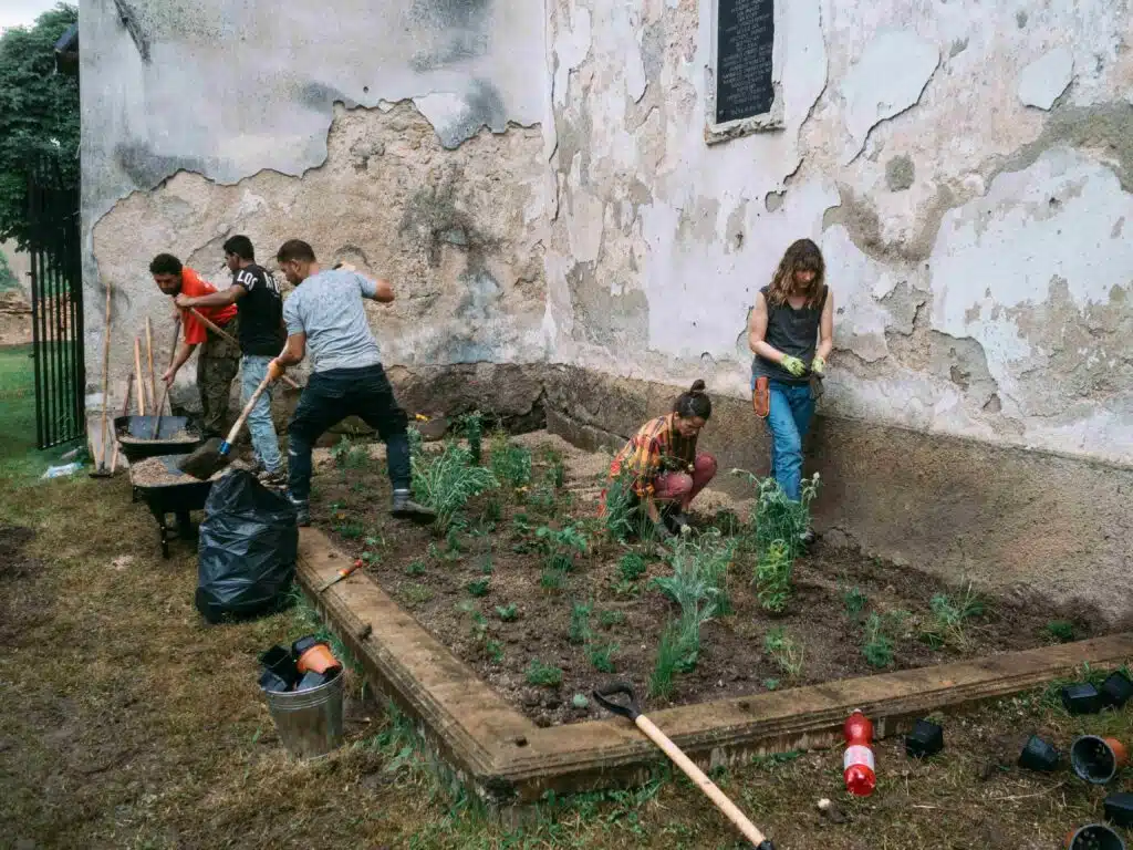 The 3-day master class focused on the revitalization of the village center around the medieval church in the settlement of Kameňany. The course was attended by 40 volunteers from Slovakia, Slovenia, and Romania, who arranged green areas around the church and learned about the traditional approaches of making lime plaster near the parish.The works took place next to the Lutheran church directly in the center of the village of Kameňany, which is part of the Gothic route in the Gemer region. The interior of the Romanesque-Gothic church is painted with medieval frescoes, and the outside is surrounded by a defensive wall. There are other historical buildings belonging to the church nearby.The immediate surroundings of the church needed quite a bit of attention. The participants took care of the cleaning and removal of excess material and the design and replanting of the old flower garden. They used plants suitable for the location next to the monument and typical of the region. Landscape architect Michala Poláková led the arrangement of the external surroundings.Arborist Marek Áč led the pruning of linden trees near the church, which threatened the monument. On the second day of the workshop, the participants also planted a new linden tree in a more historically suitable place.At the facility near the church, the participants tackled lime plasters. With Viera Kozárova, they learned how to slake lime, prepare the base layer on the wall, mix plaster the old way, and use traditional materials.The application of lime plasters varied considerably in different historical periods. Under the leadership of restorer Juraj Gregorek, they tested Gothic, Renaissance, and Baroque techniques as well as techniques from the 19th century.The participants could also try Renaissance painting with different techniques and the preparation of natural pigments.On the last day of the course, the participants went on a tour of selected parts of the Gemer region.During the course, the participants were accommodated in a former Franciscan monastery from the 18th century, which today represents the cultural and creative center of the nearby town of Rožňava.The rejuvenation of the center of the village of Kameňany represents great progress in relation to heritage, environmental protection, and improved quality of life for the local population. The inhabitants of the village also participated in the renovation to a large extent, they acquired key knowledge and skills to maintain the surroundings of the heritage buildings in the same way in the future.