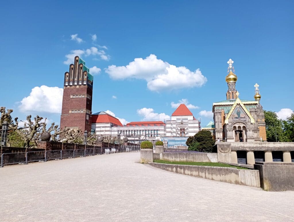 V začetku 20. stoletja je bilo mesto pomembno središče novega arhitekturnega stila, secesije (nemško Jugendstil). S tem obdobjem je predvsem zaznamovana četrt Mathildenhöhe (uvrščena na seznamu UNESCO svetovne dediščine), v kateri so med 1899 in 1914 nastale številne arhitekturne stvaritve v duhu secesije, med njimi pa še posebej izstopa Poročni stolp (Hochzeitsturm) Josepha Marie Olbricha. Pobudnik arhitekturnega gibanja je bil hesenški veliki vojvoda Ernest Ludvik I.